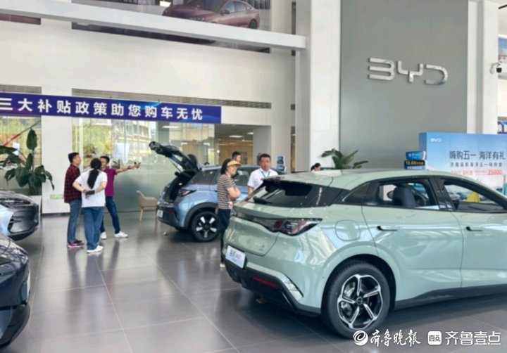比亚迪汽车济南乾元新景4S店内人头攒动,不少顾客都想趁着政策优惠,将心仪的新能源汽车开回家。海鸥车型以35%的销量占比成为该店当之无愧的“人气王”。这款起售价6.98万元的纯电车,在国补2万元、省补叠加厂补3000元的政策红利下,终端售价直探4万元区间,成为不少市民的选择。
